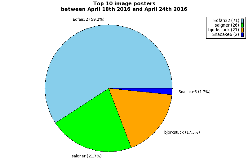 | Top 10 image posters between April 18th 2016 and April 24th 2016 | ||