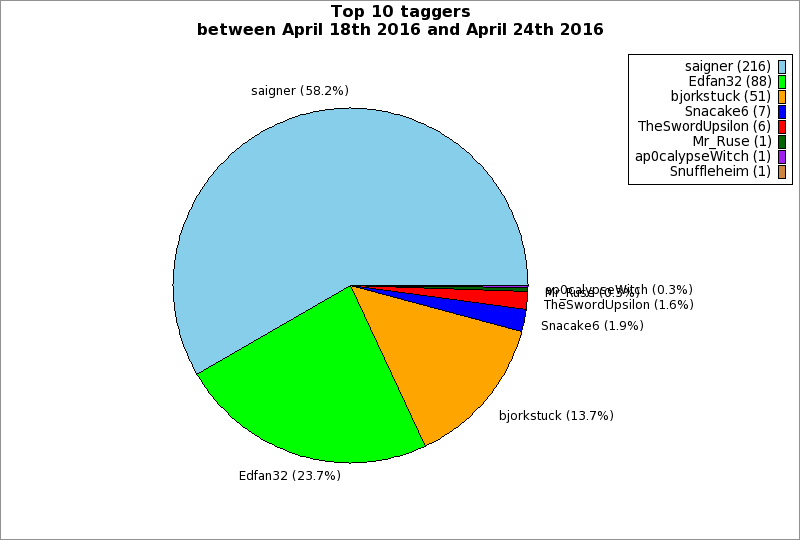 | Top 10 taggers between April 18th 2016 and April 24th 2016 | ||
