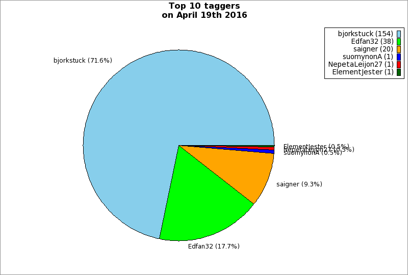 | Top 10 taggers on April 19th 2016 | ||