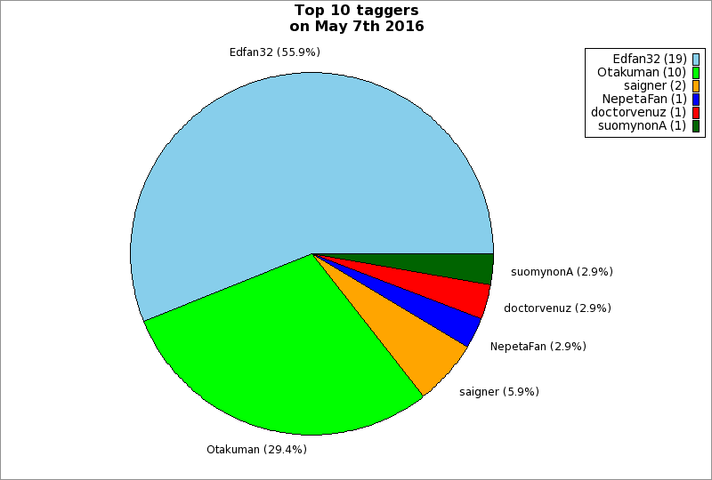 | Top 10 taggers on May 7th 2016 | ||