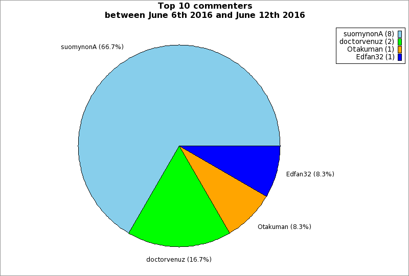 | Top 10 commenters between June 6th 2016 and June 12th 2016 | ||