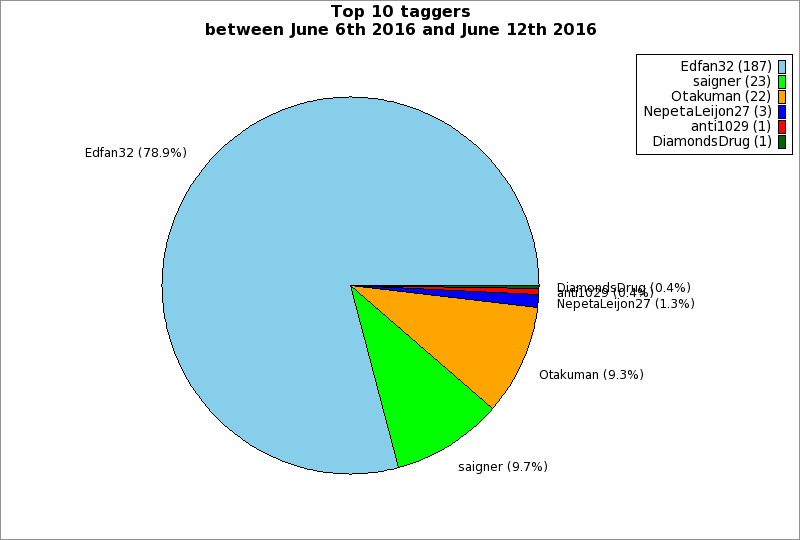 | Top 10 taggers between June 6th 2016 and June 12th 2016 | ||