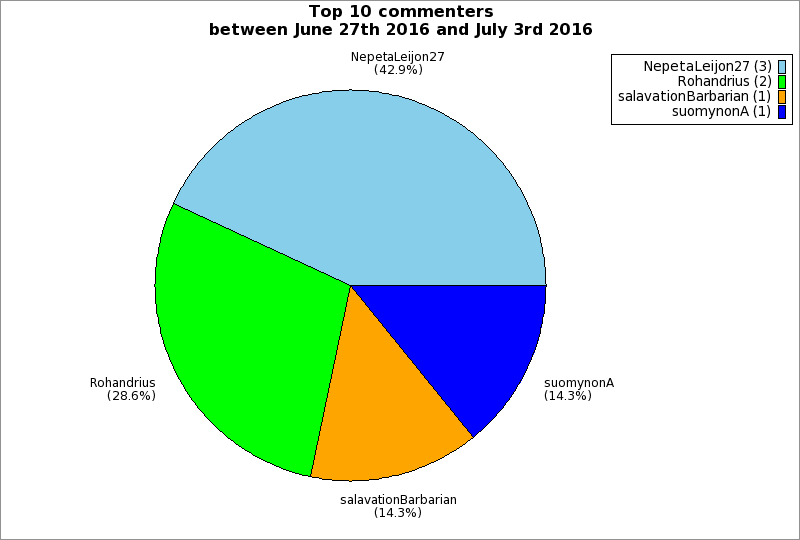 | Top 10 commenters between June 27th 2016 and July 3rd 2016 | ||