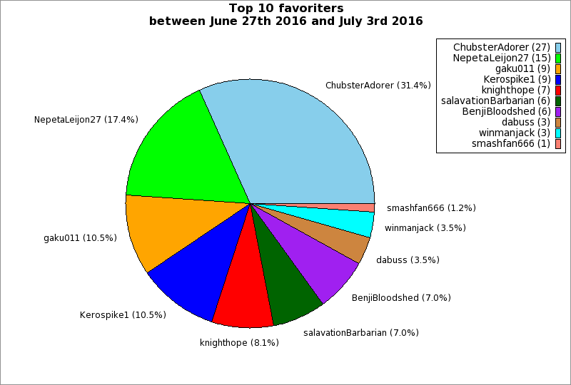 | Top 10 favoriters between June 27th 2016 and July 3rd 2016 | ||