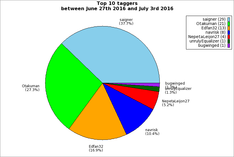 | Top 10 taggers between June 27th 2016 and July 3rd 2016 | ||