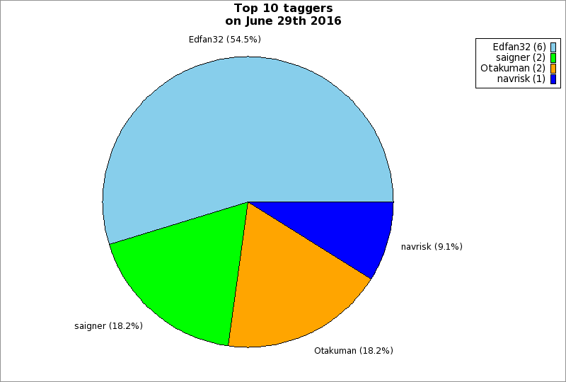 | Top 10 taggers on June 29th 2016 | ||