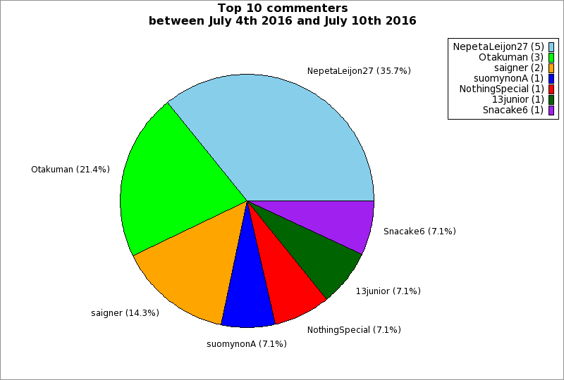 | Top 10 commenters between July 4th 2016 and July 10th 2016 | ||
