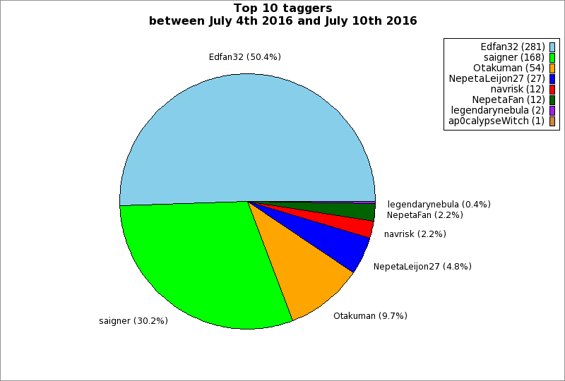 | Top 10 taggers between July 4th 2016 and July 10th 2016 | ||