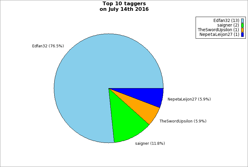 | Top 10 taggers on July 14th 2016 | ||