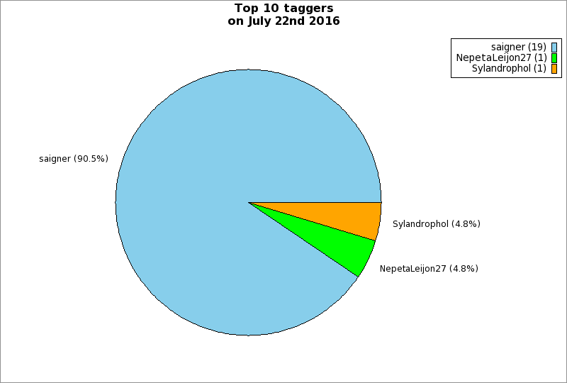 | Top 10 taggers on July 22nd 2016 | ||