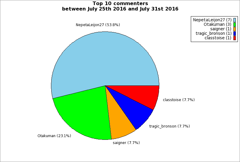 | Top 10 commenters between July 25th 2016 and July 31st 2016 | ||