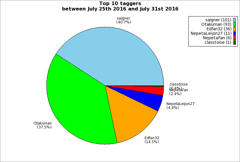 | Top 10 taggers between July 25th 2016 and July 31st 2016 | ||