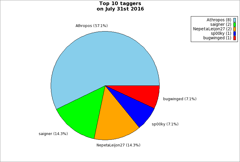 Top 10 taggers on July 31st 2016