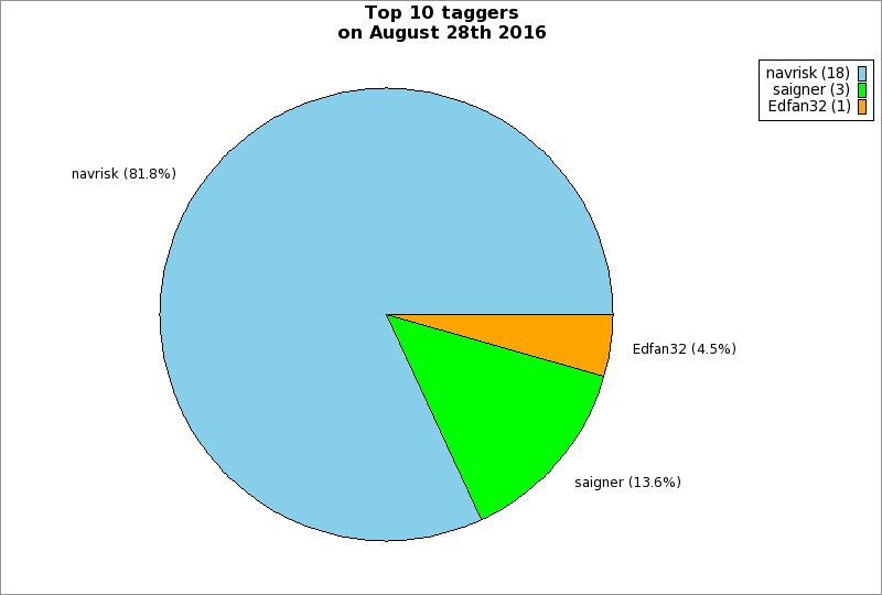 | Top 10 taggers on August 28th 2016 | ||