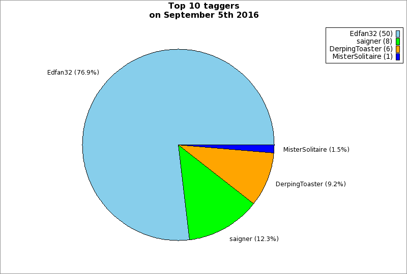 | Top 10 taggers on September 5th 2016 | ||