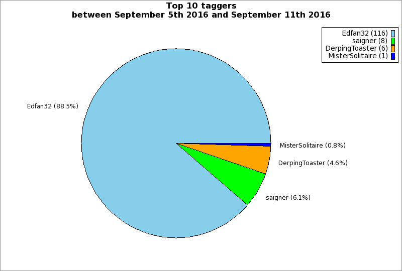 | Top 10 taggers between September 5th 2016 and September 11th 2016 | ||
