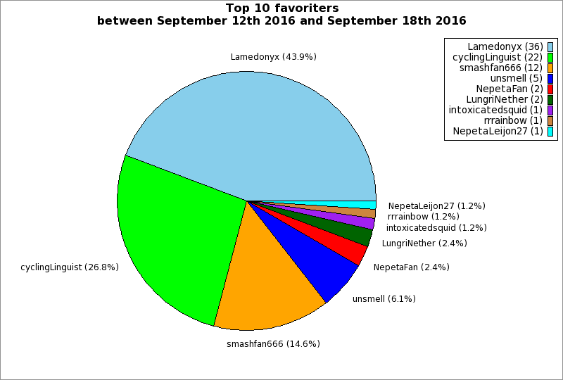 | Top 10 favoriters between September 12th 2016 and September 18th 2016 | ||