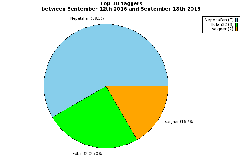 | Top 10 taggers between September 12th 2016 and September 18th 2016 | ||