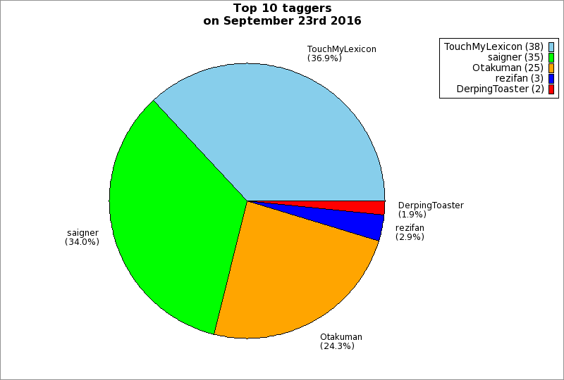 | Top 10 taggers on September 23rd 2016 | ||