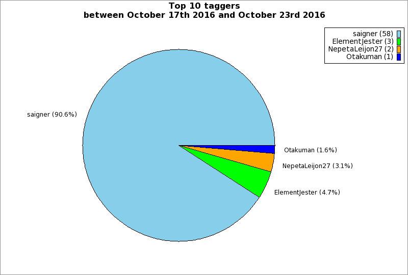 | Top 10 taggers between October 17th 2016 and October 23rd 2016 | ||