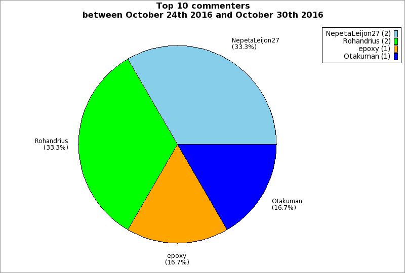 | Top 10 commenters between October 24th 2016 and October 30th 2016 | ||