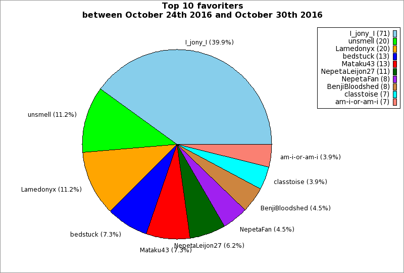 | Top 10 favoriters between October 24th 2016 and October 30th 2016 | ||