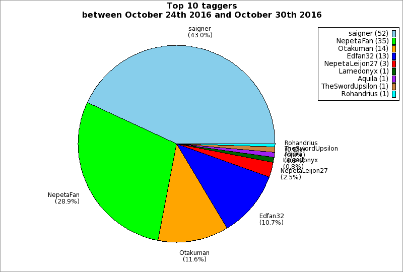 | Top 10 taggers between October 24th 2016 and October 30th 2016 | ||