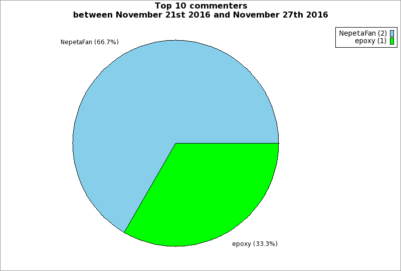| Top 10 commenters between November 21st 2016 and November 27th 2016 | ||