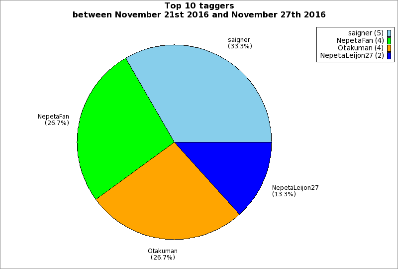 | Top 10 taggers between November 21st 2016 and November 27th 2016 | ||