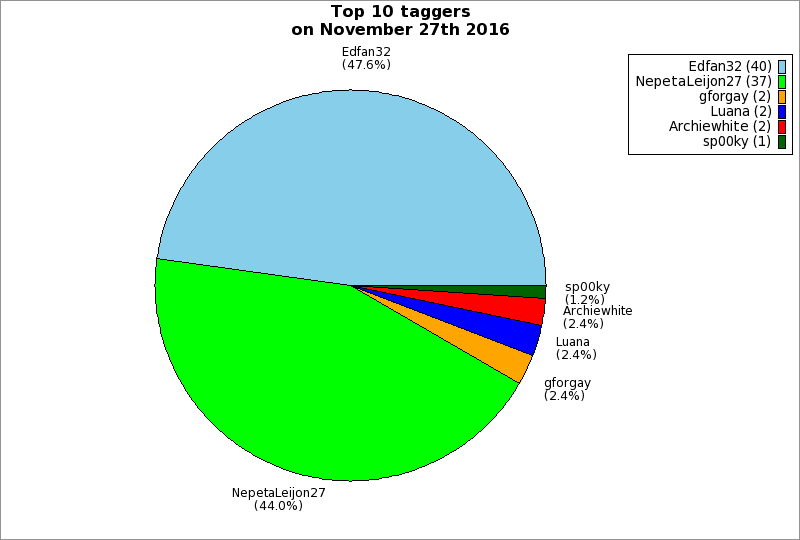 | Top 10 taggers on November 27th 2016 | ||