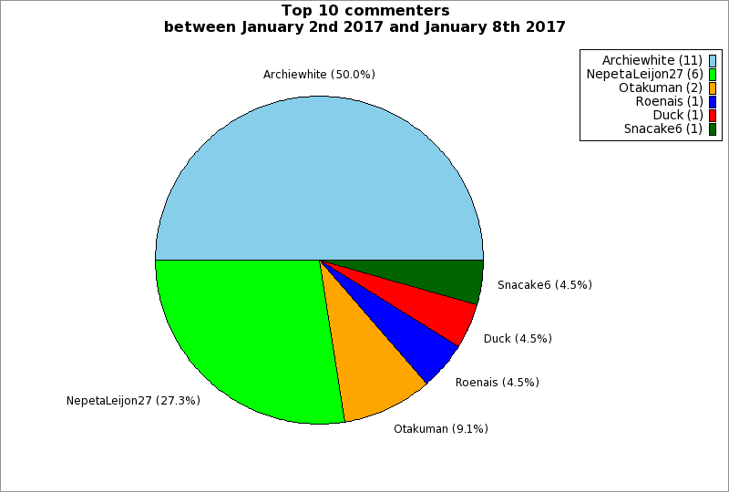 | Top 10 commenters between January 2nd 2017 and January 8th 2017 | ||
