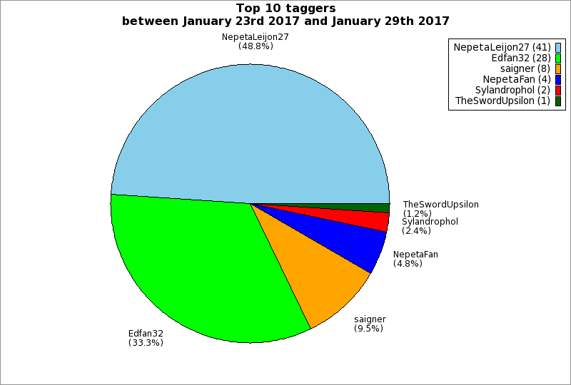 | Top 10 taggers between January 23rd 2017 and January 29th 2017 | ||