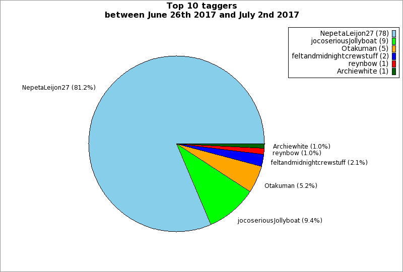 | Top 10 taggers between June 26th 2017 and July 2nd 2017 | ||