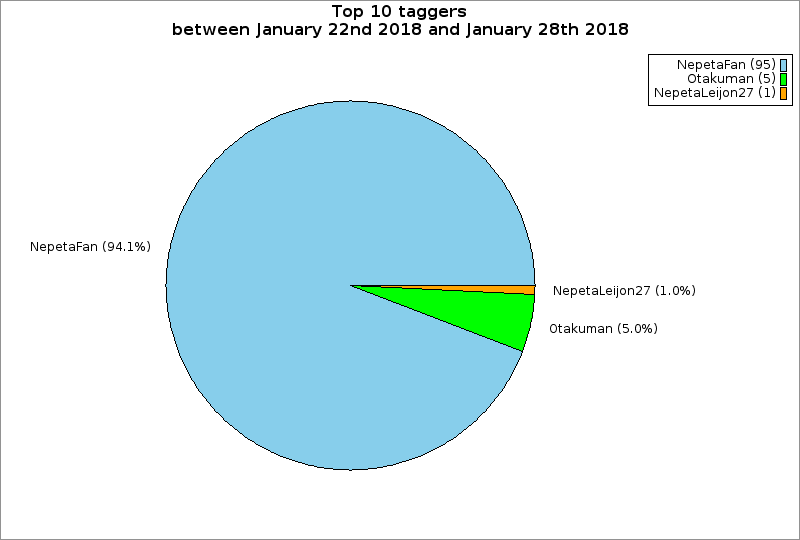 | Top 10 taggers between January 22nd 2018 and January 28th 2018 | ||