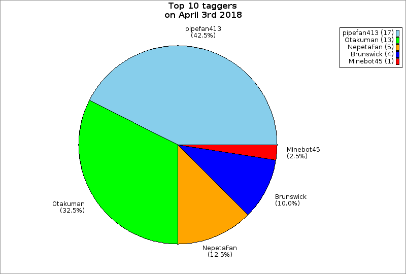 | Top 10 taggers on April 3rd 2018 | ||