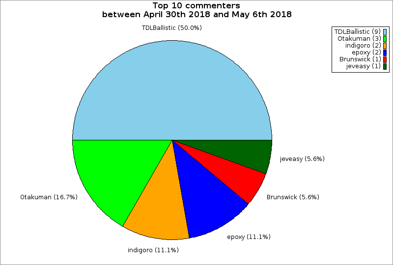 | Top 10 commenters between April 30th 2018 and May 6th 2018 | ||