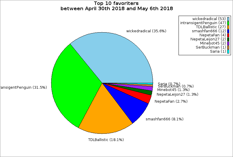 | Top 10 favoriters between April 30th 2018 and May 6th 2018 | ||