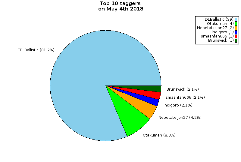 | Top 10 taggers on May 4th 2018 | ||