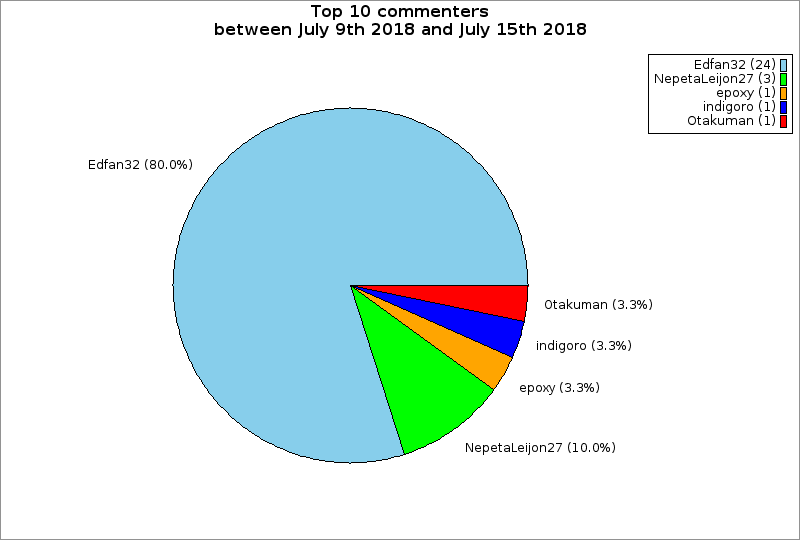 | Top 10 commenters between July 9th 2018 and July 15th 2018 | ||