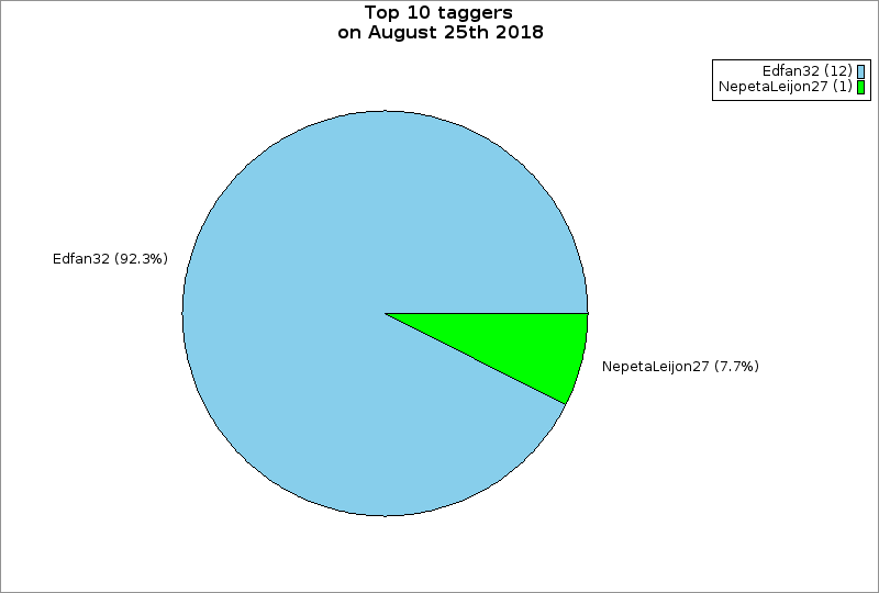 Top 10 taggers on August 25th 2018