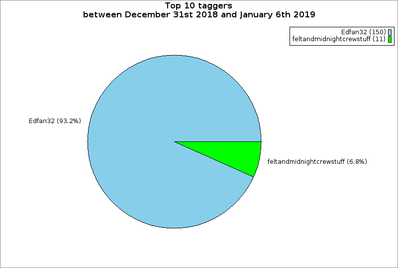 | Top 10 taggers between December 31st 2018 and January 6th 2019 | ||