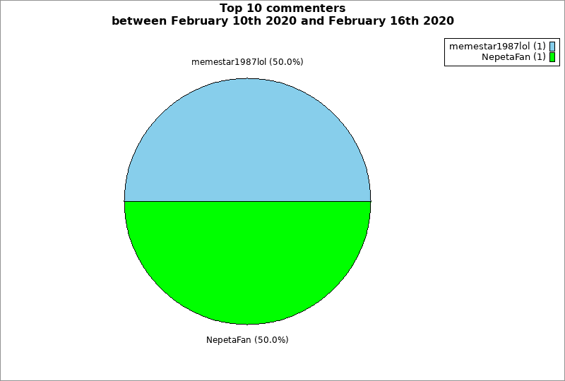 | Top 10 commenters between February 10th 2020 and February 16th 2020 | ||