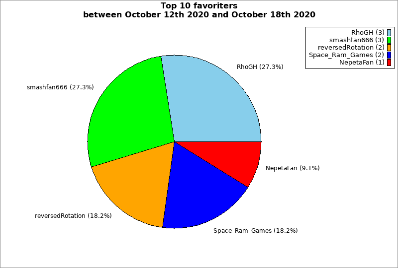 | Top 10 favoriters between October 12th 2020 and October 18th 2020 | ||