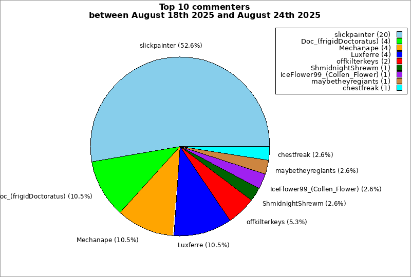 | Top 10 commenters between August 18th 2025 and August 24th 2025 | ||