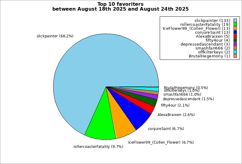 | Top 10 favoriters between August 18th 2025 and August 24th 2025 | ||