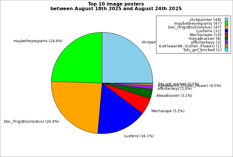 | Top 10 image posters between August 18th 2025 and August 24th 2025 | ||