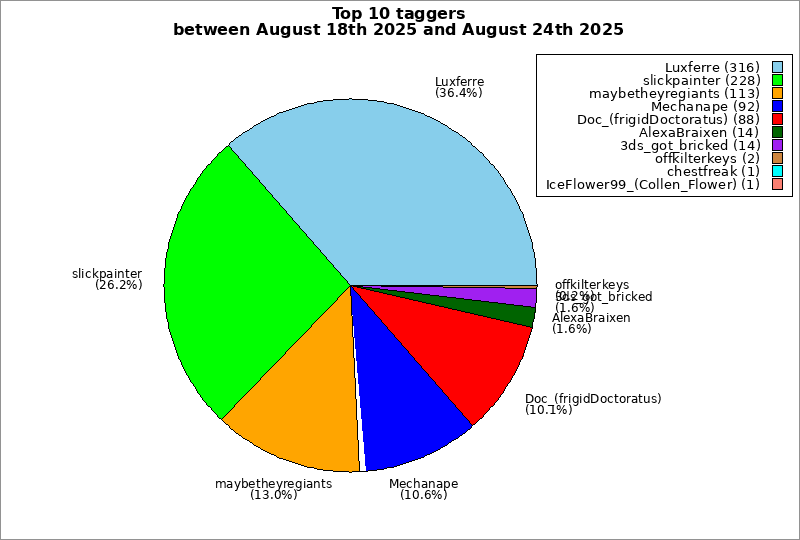 | Top 10 taggers between August 18th 2025 and August 24th 2025 | ||