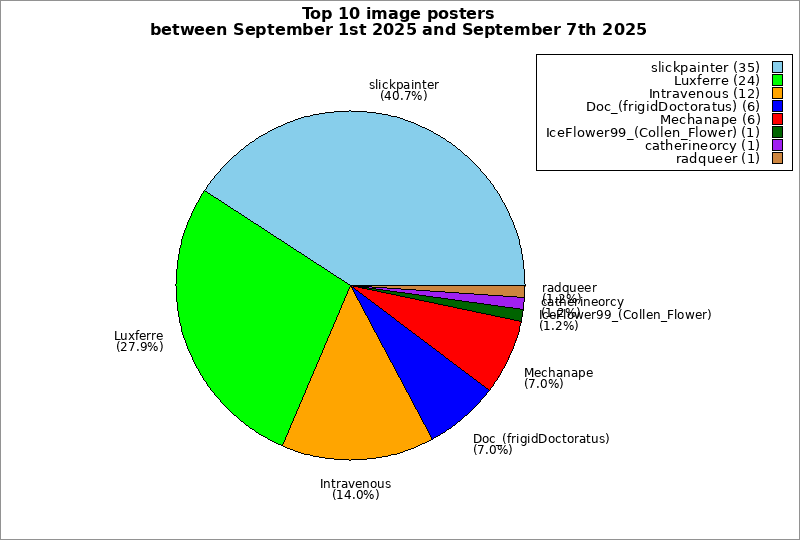 | Top 10 image posters between September 1st 2025 and September 7th 2025 | ||