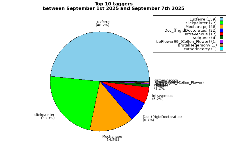 | Top 10 taggers between September 1st 2025 and September 7th 2025 | ||