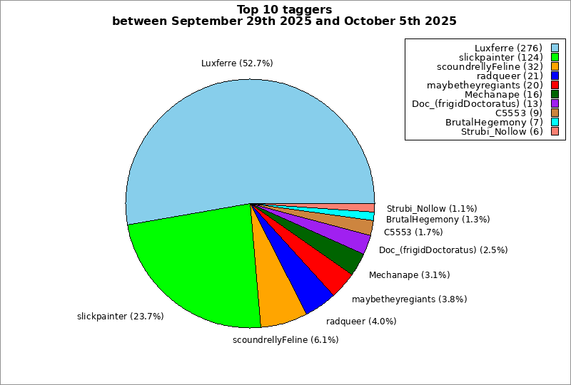 | Top 10 taggers between September 29th 2025 and October 5th 2025 | ||
